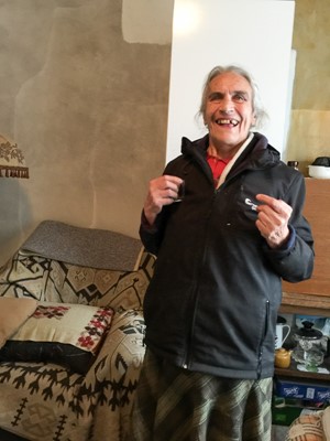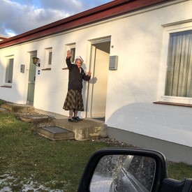 It was a cold January day, and we could only trust the Lord that we would find her in her home. She has no phone and only writes handwritten letters to our office. When I arrived there, I mistakenly looked for the wrong apartment number. While I was looking for the right address, I met some people on the street that were taking a Sunday walk and I decided to ask if they knew about an elderly woman that lives somewhere in the government housing.